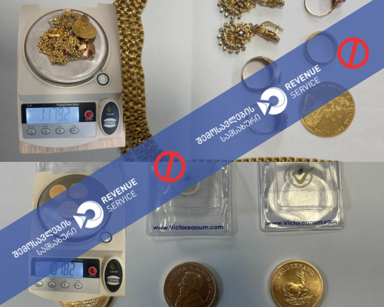 მებაჟე ოფიცრებმა ქუთაისის აეროპორტში არადეკლარირებული ოქროს საიუველირო ნაკეთობების შემოტანის ფაქტები აღკვეთეს